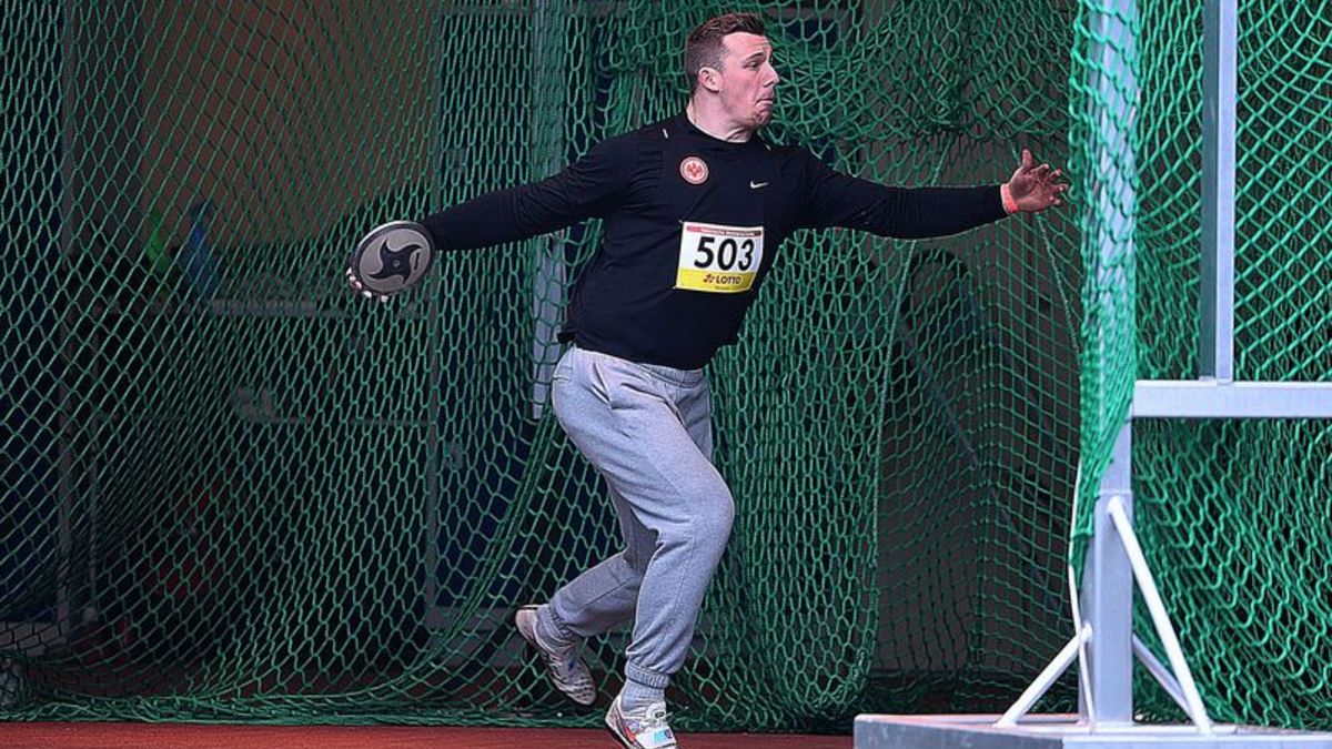 Eintrachtler Marius Karges bei den Werfertagen in Halle bestens aufgelegt