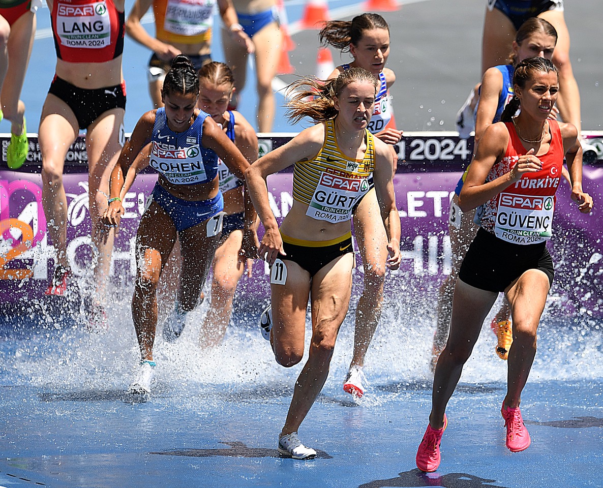 Ein weiteres Drama gab es dann noch bei den 1500 Meter. Darin verwickelt im zweiten Vorlauf Nele Weßel (TV Waldstraße Wiesbaden). Das Feld lag auf den ersten drei Runden dicht beisammen und sortierte sich für den Spurt in der Endphase. Auf der letzten Gegengeraden dann das Malheur. Marta Zenoni (ITA) kam zu Fall. Weßel, knapp dahinter laufend, konnte nicht mehr ausweichen und stürzte ebenfalls. Die Wiesbadenerin rappelte sich zwar wieder auf, doch der Spurt um die Plätze fand ohne sie statt. Am Ende lief sie mit 4:16,54 Minuten als Letzte über die Ziellinie. Doch Glück im Unglück, denn auch der zweite DLV-Einspruch an diesem Vormittag hatte Erfolg. Weßel erhielt für das Finale am Sonntag einen Startplatz zugesprochen, da ihr Sturz unverschuldet war und sie nicht in die Entscheidung eingreifen konnte. Neben Weßel waren auch Gesa Krause und Olivia Gürth erfolgreich. Beide machten den Finaleinzug für das 3000m Hindernis Finale am Sonntag klar!